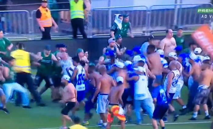 Vídeo: Coritiba x Cruzeiro é interrompido após invasão de campo e pancaria entre torcedores