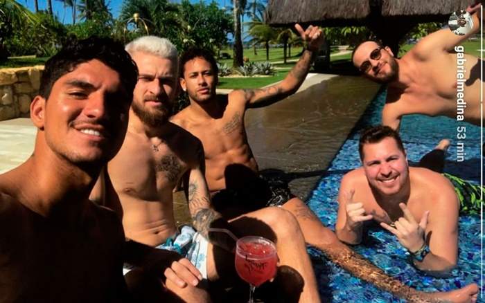 Ao lado de Medina e Lucas Lima, Neymar curte férias na Bahia
