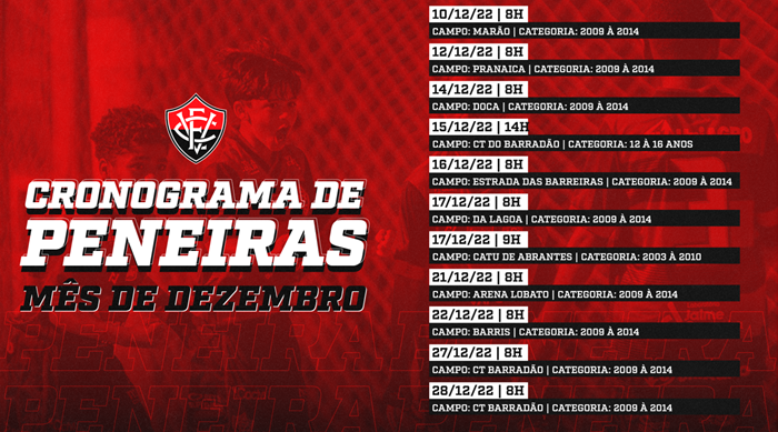 Vitória promove peneira no interior e na capital; confira a agenda
